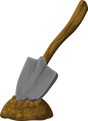 a shovel sticking out of dirt