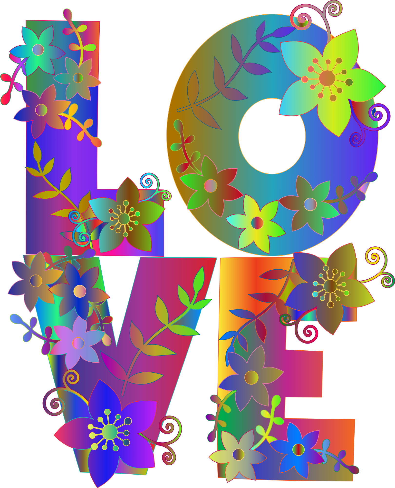 - Love Typography Floral Flowers Romance Romantic Valentine Decorative Decoration Ornamental Colorful Prismatic Chromatic Rainbow
