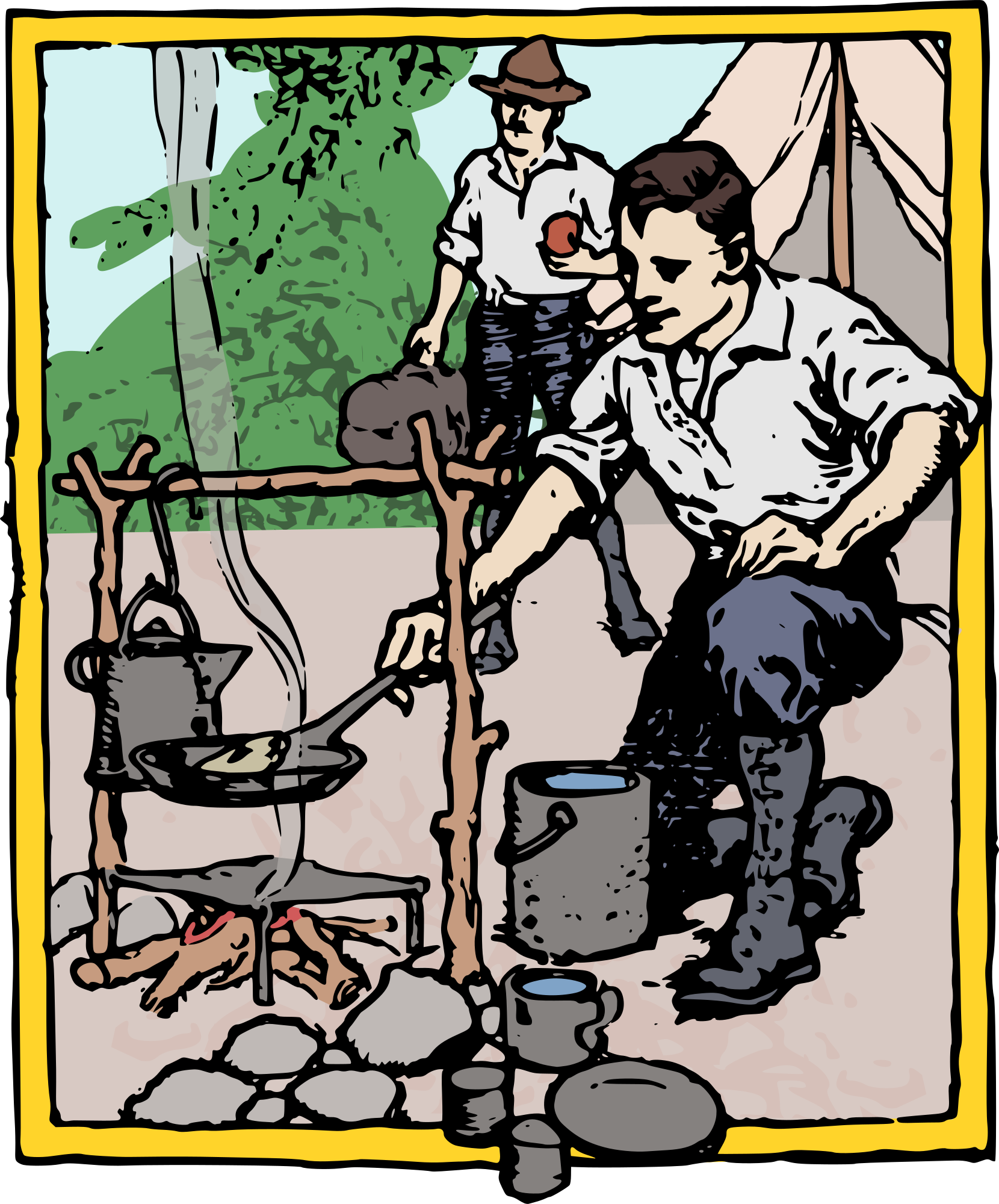 I synthesized the original waaaay back in 2013, so I thought it was time to try to offer a colour version of these men camping too :)