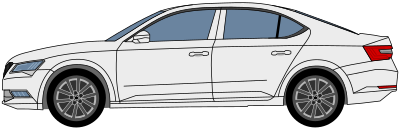 Side View of a Skoda Superb sedan automobile.