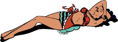Woman in a retro bikini at the beach.