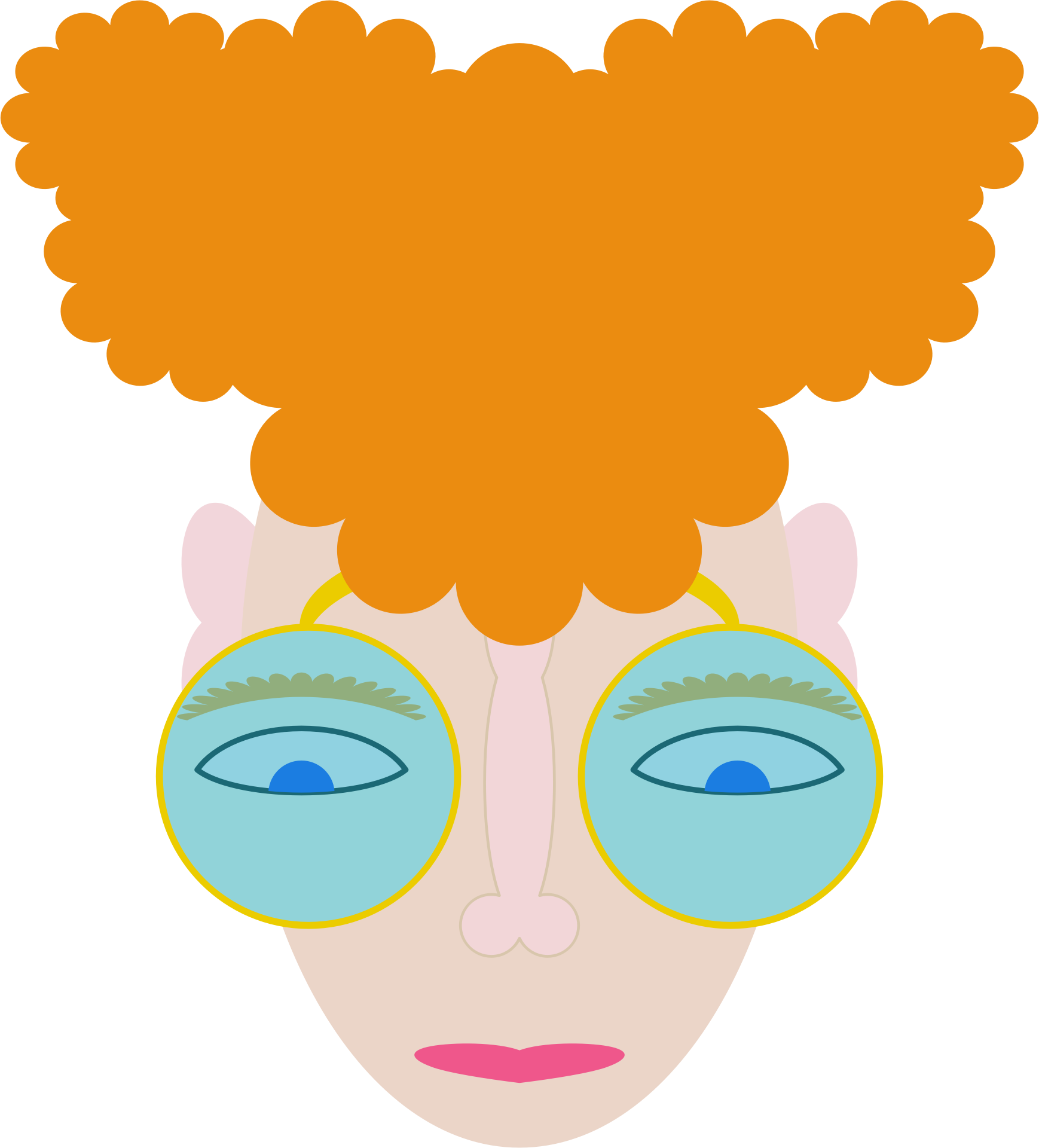A curly redhead with big glasses is concentrating on something, be it reading, studying, soldering, or whatever else.
