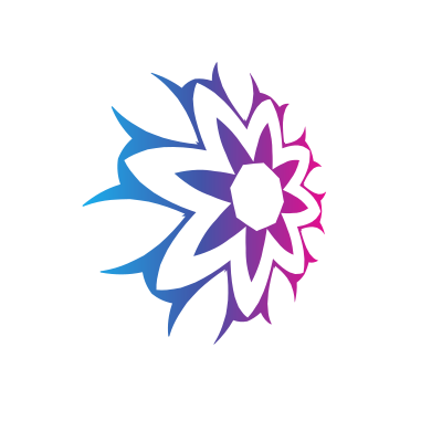 Logo element in the shape of a flower.
