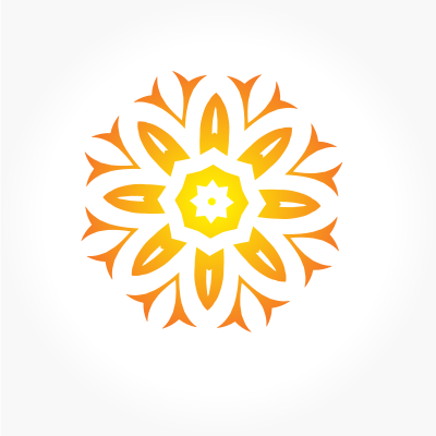 Floral logo element in orange colour.