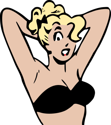 Woman in bikini with her hands behind her head.