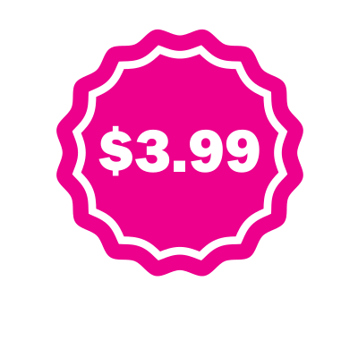 Round pink price sticker.