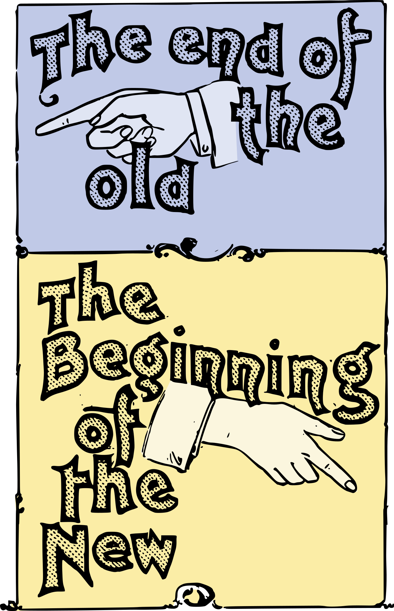 simple colour version of this sign thing; the end of the old -- the beginning of the new!