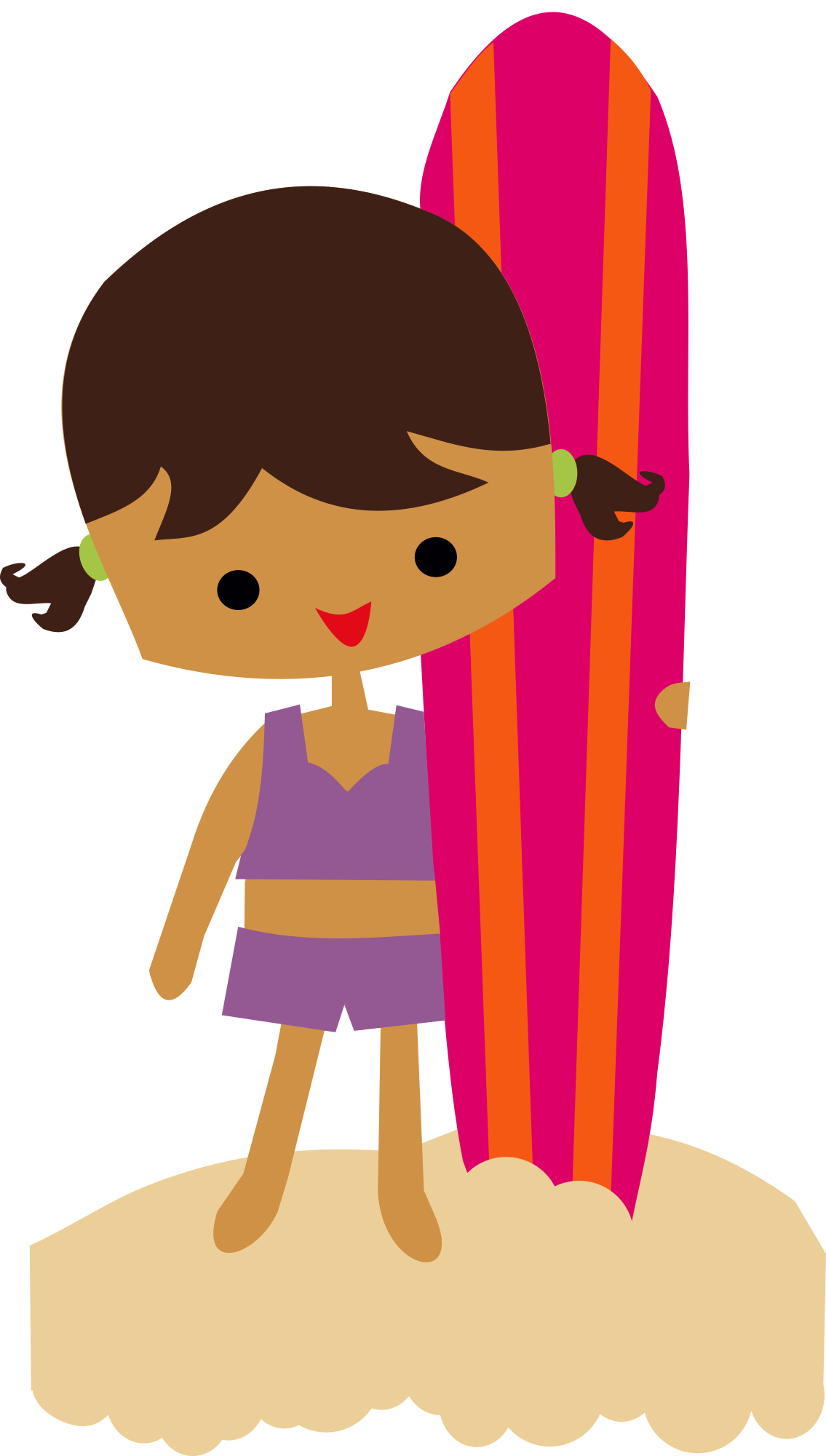 - surfer girl tropical surfing surfboard Hawaii beach sea ocean summer cartoon standing female woman