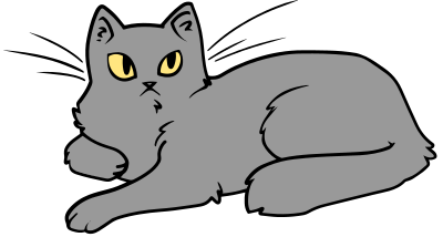 A grey cute cat (but looking a bit annoyed).