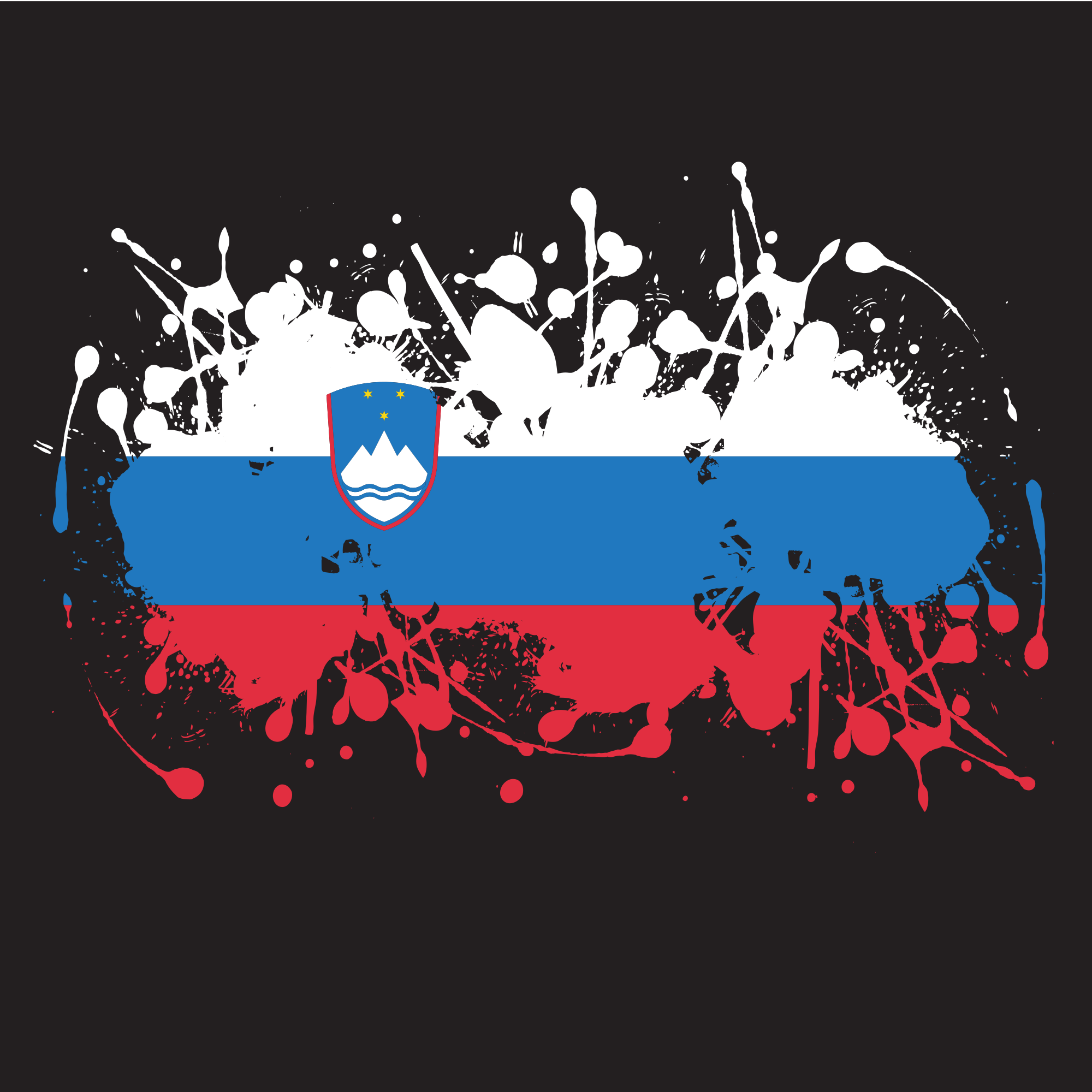 Slovenian flag designed with ink splash.