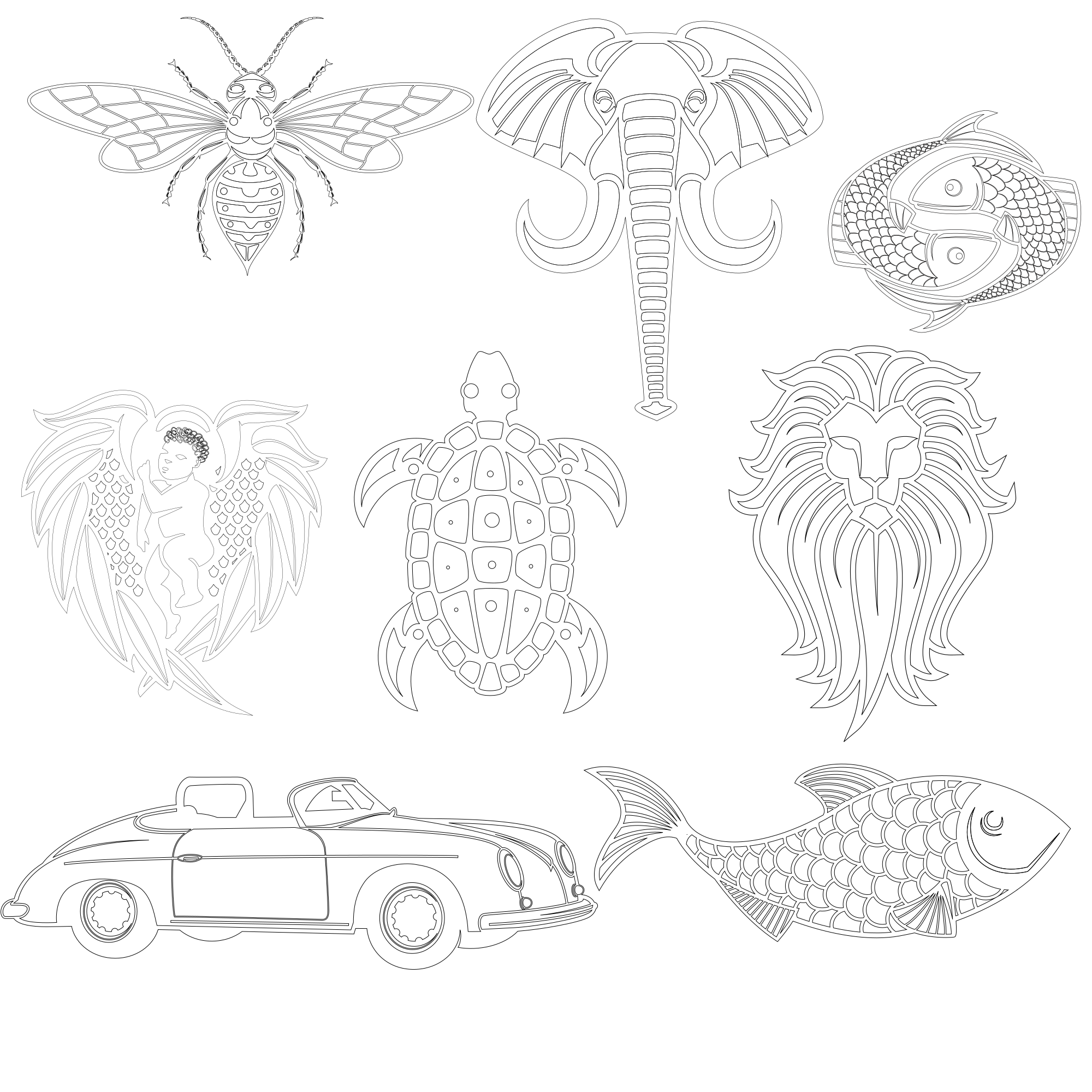 Set of vector clip art for colouring.Originally published by publicdomainvectors.org
