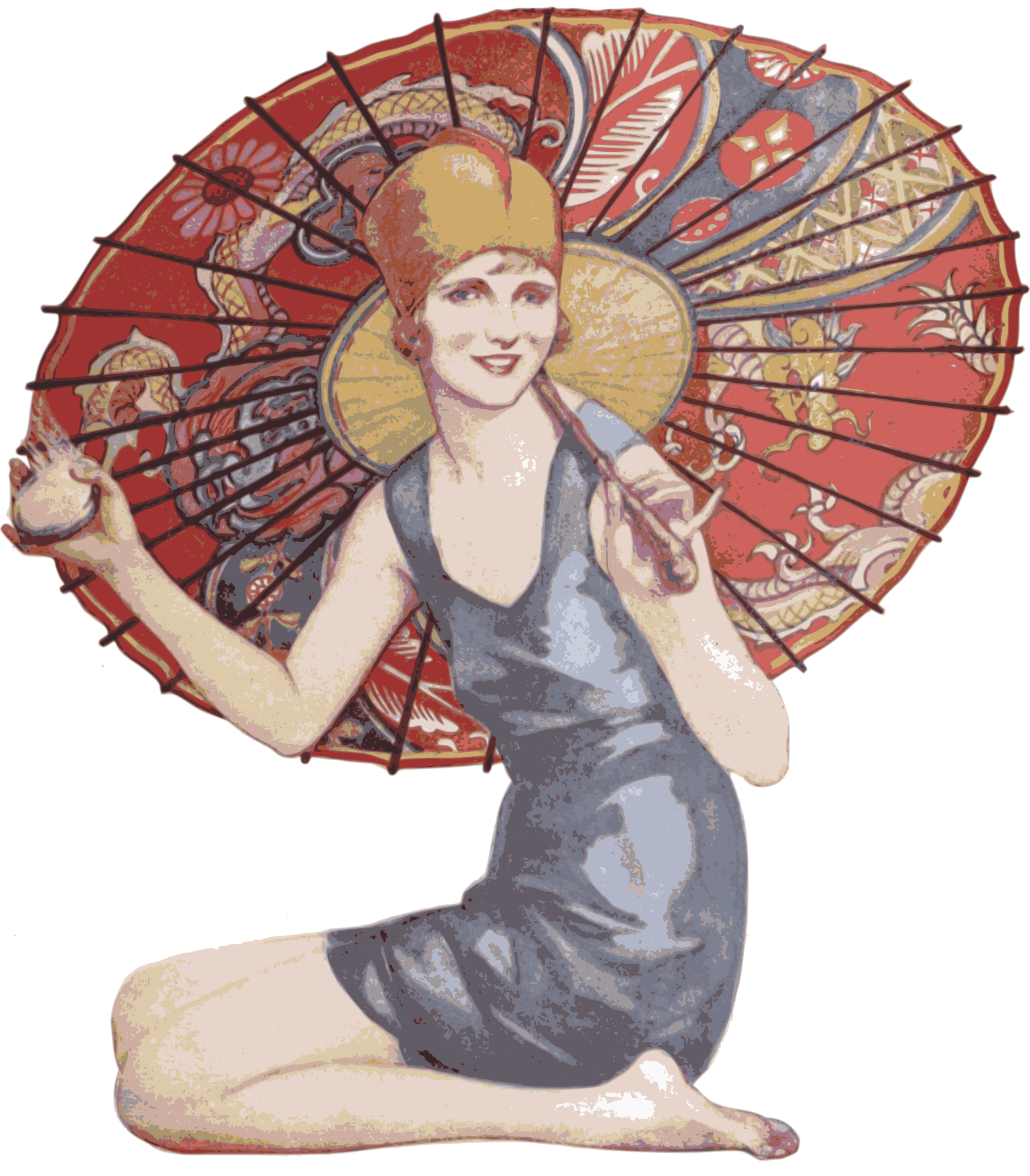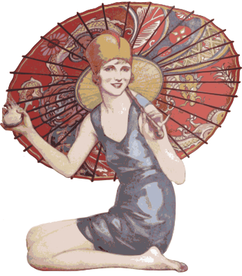 a white lady with an Asian umbrella