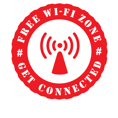 Red sticker with free wi-fi zone sign.