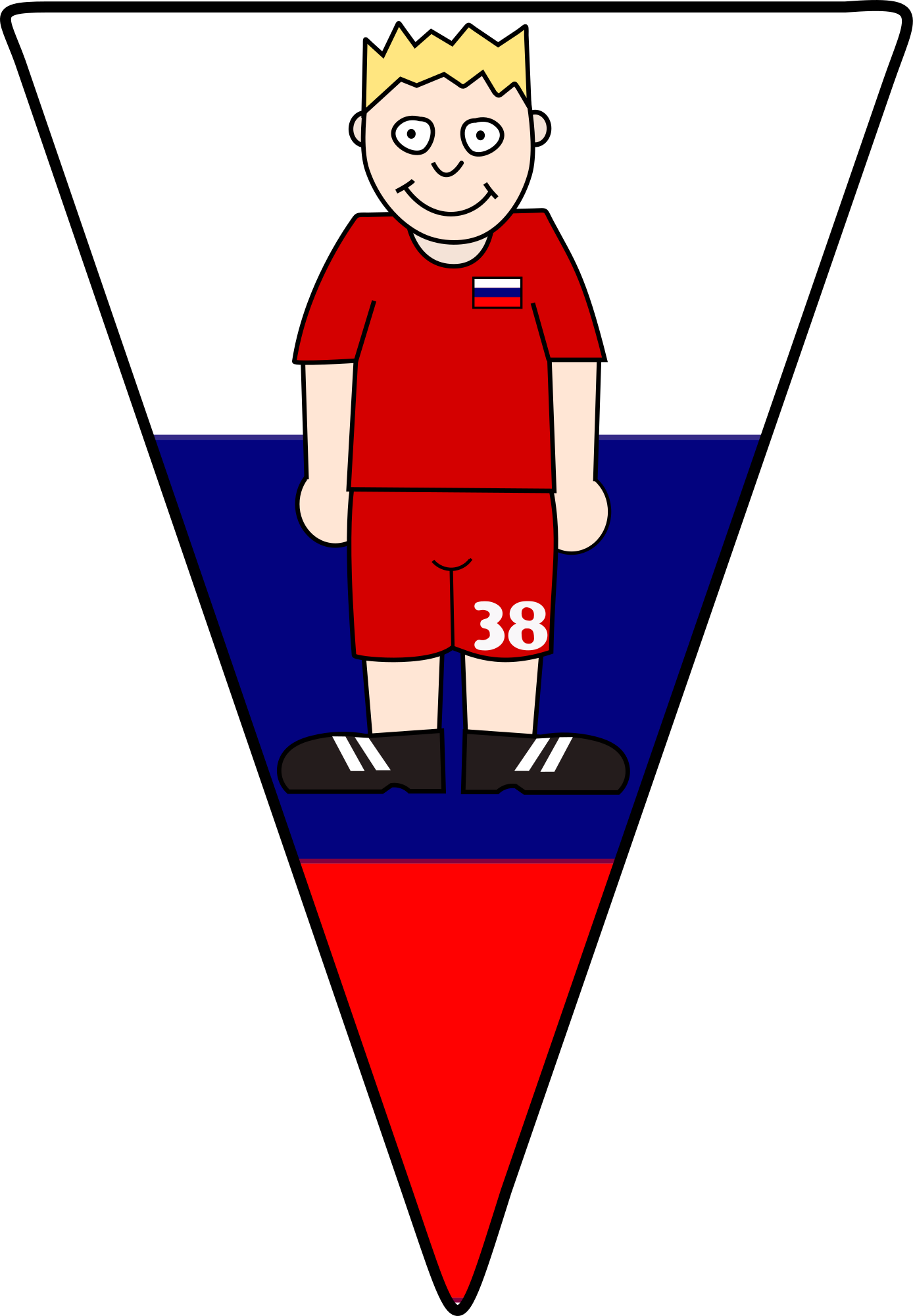 A pennant in style of the russish flag with a russish soccerplayer on it.