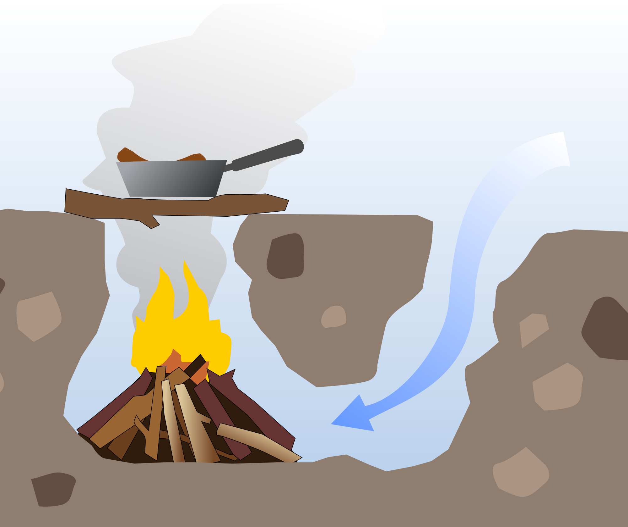 This is a diagram of a Dakota fire hole, named after the Dakota people who would use this underground fire style to reduce smoke and reduce danger of a prairie fire. Originally drawn by MichaelPhilip and released into the public domain.