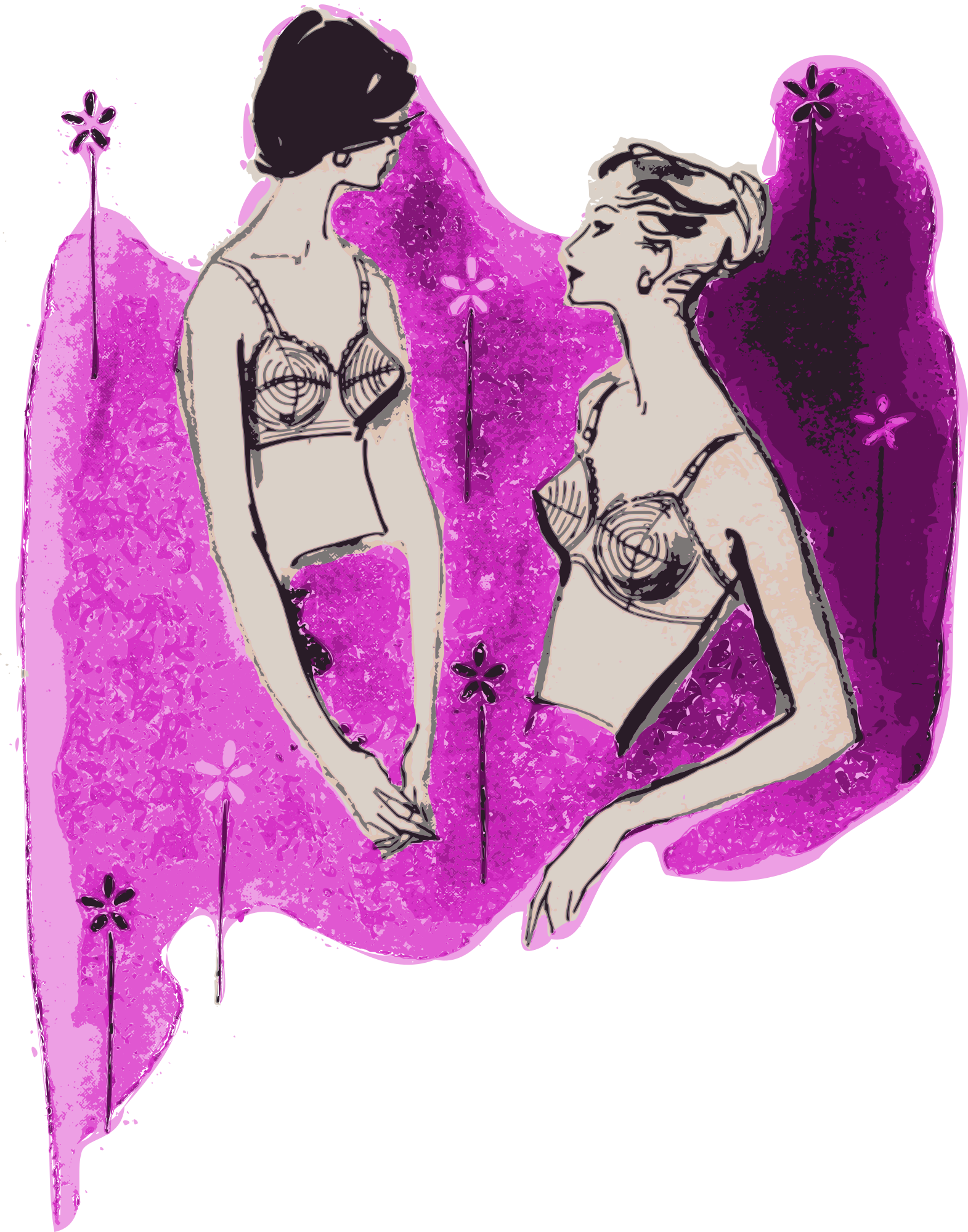 a vintage depiction of two women in bras