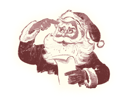 retro santa thinks up an idea, maybe the idea is Christmas in July?!