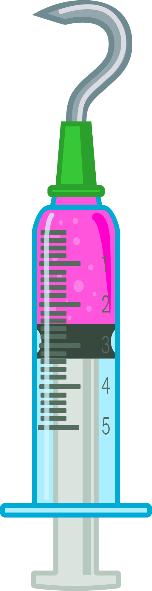 A syringe with the needle bend to the shape of a question mark.