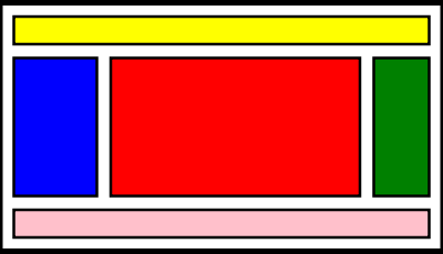 This is an example of a simple colored layout icon for an internet site: header, nav, main, footer, aside.