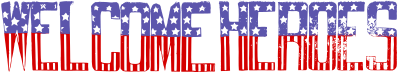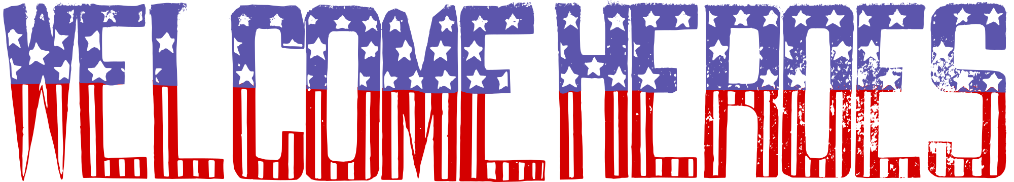 old retro American flag style "Welcome Heroes" text banner