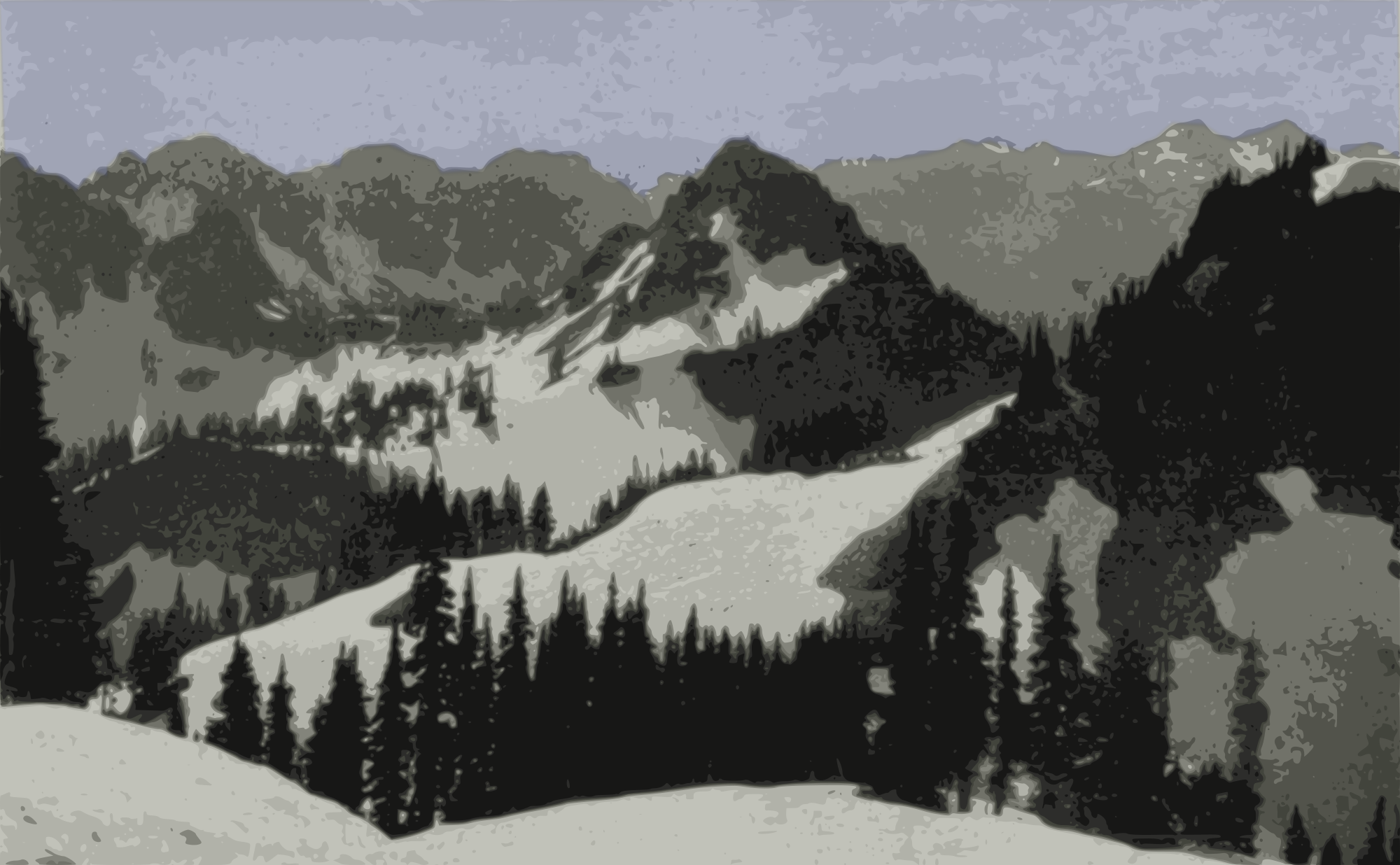 a scene on a snowy mountain