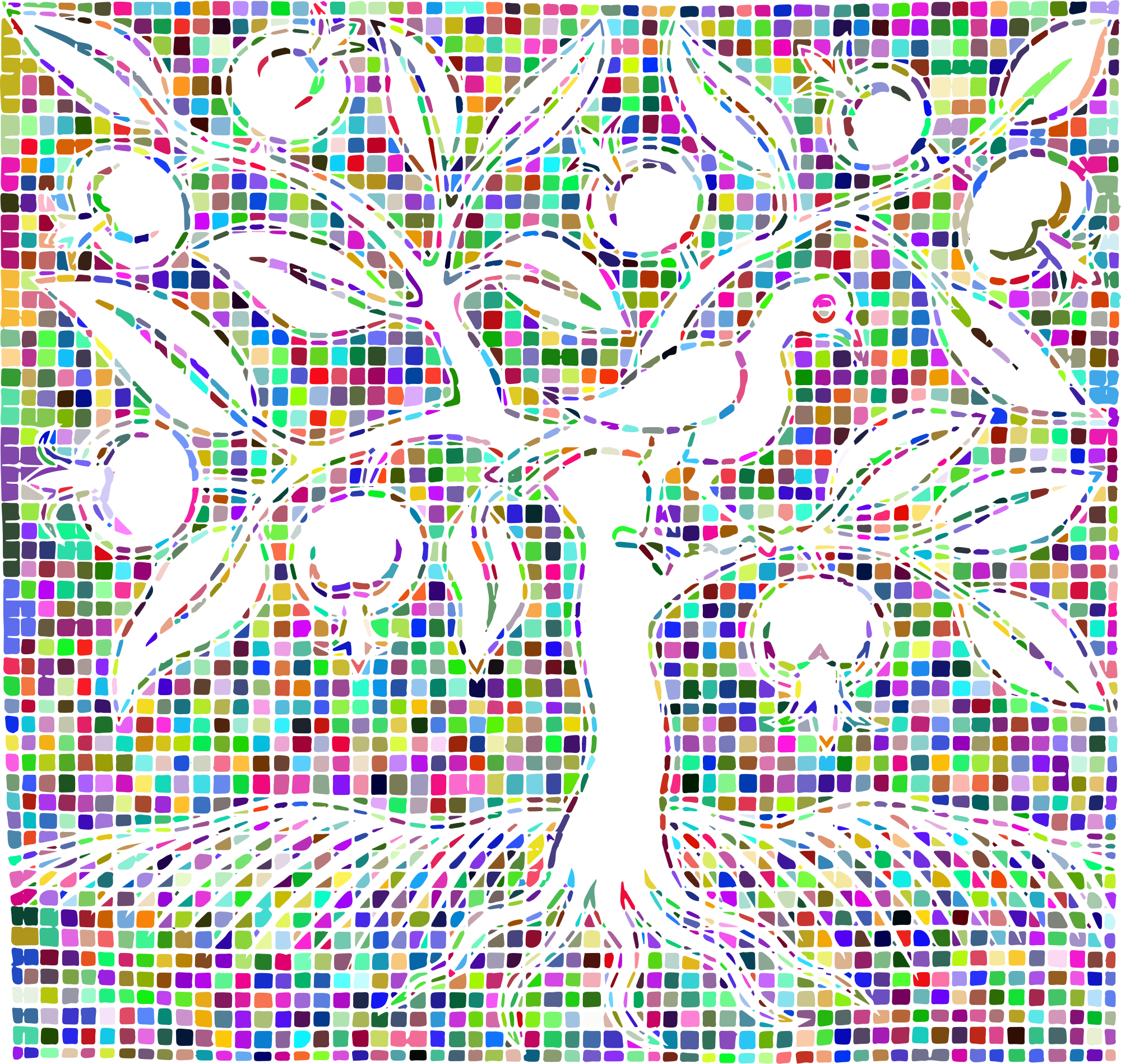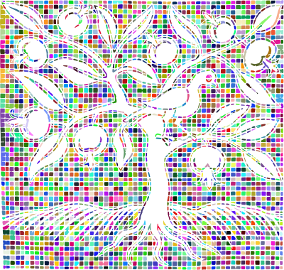 Vintage Bird In A Tree Mosaic Colorful No BG