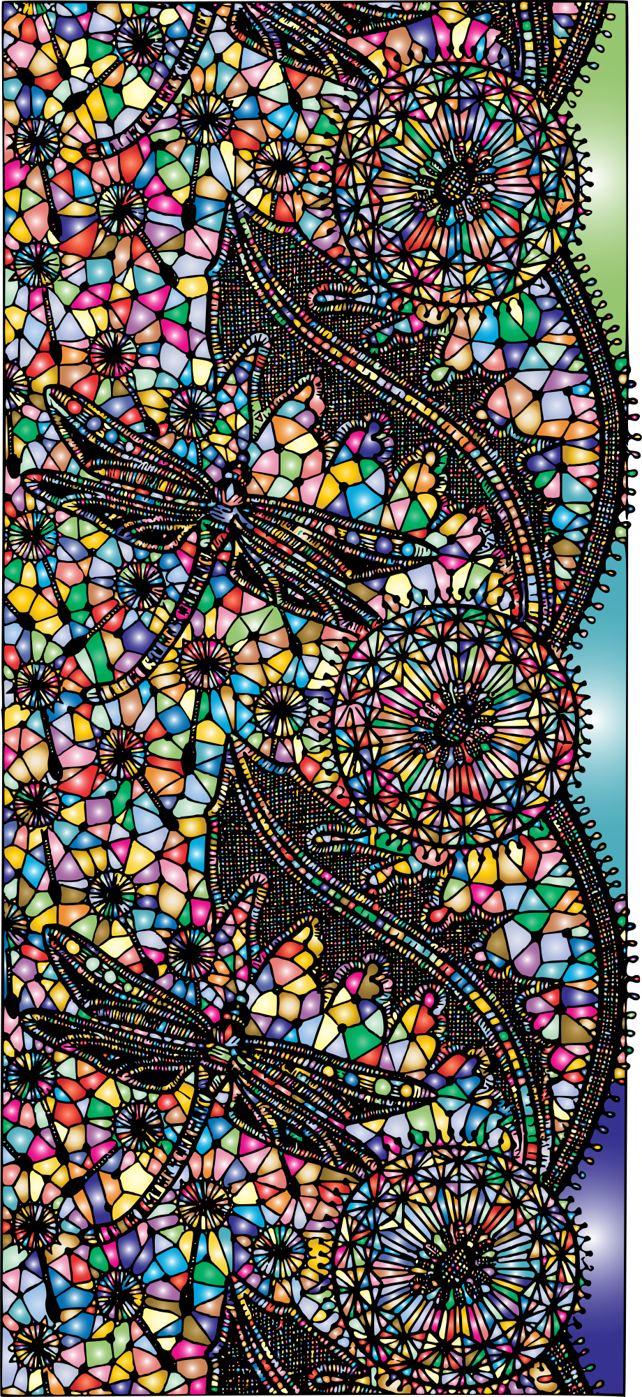 - Dragonfly Flowers Leaves Flourish Insect Animal Line Art Decorative Decoration Ornamental Vintage Retro Old Antique Colorful Prismatic Chromatic Rainbow