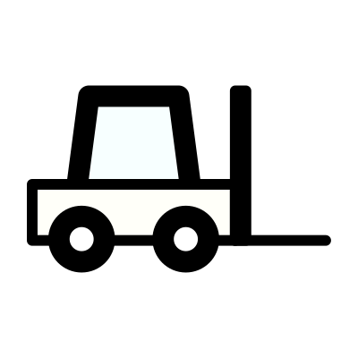 The flat iconic drawing of an abstract wheel forklift.