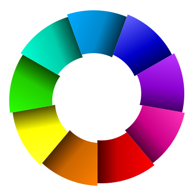 A color wheel of nine steps