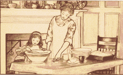 mother cooking with her daughter