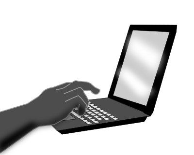 a person's hand typing on a small laptop