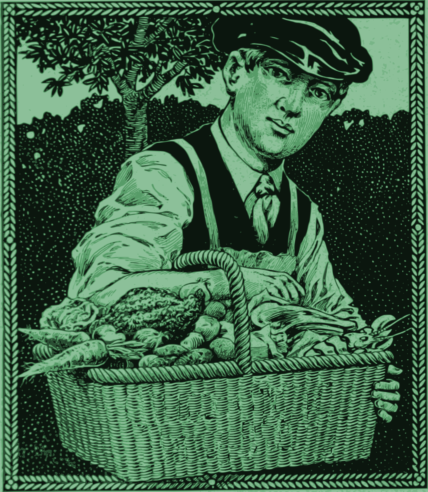 a vintage man with a basket of food