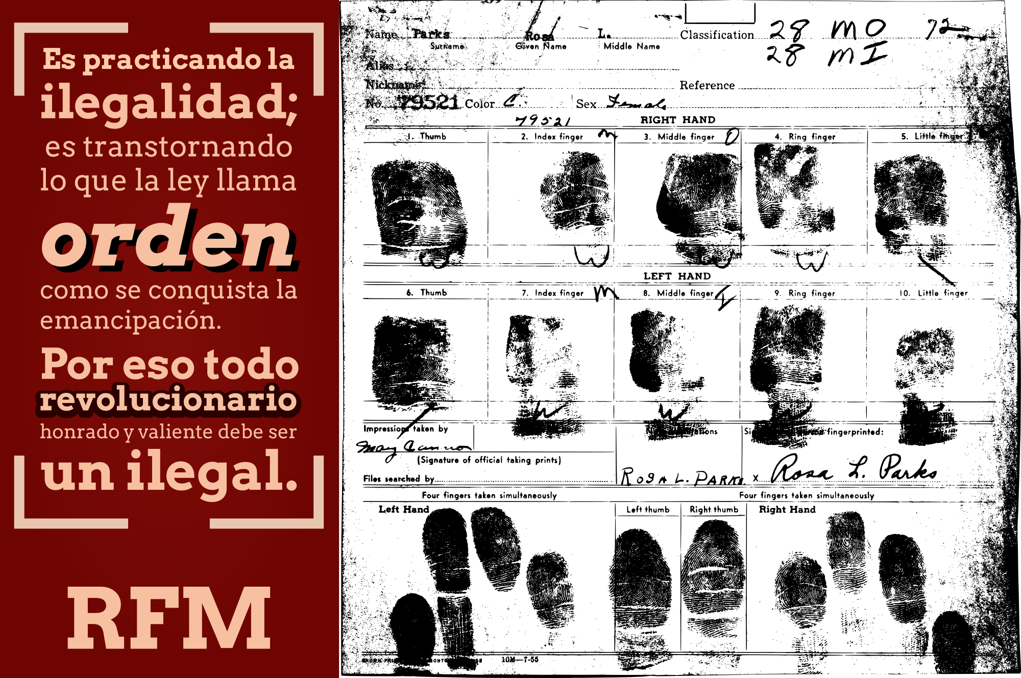 - Rosa Parks 1950s Black America USA hero civil rights civil rights activist fingerprint fingerprint card arrest detention freedom cop police oppression justice heroine anarchism Mexico anarqismo ilegalidad magonismo spanish remix+227289 remix+333622 hero revolution Rosa+Parks civil+rights civil+rights+activist fingerprint+card