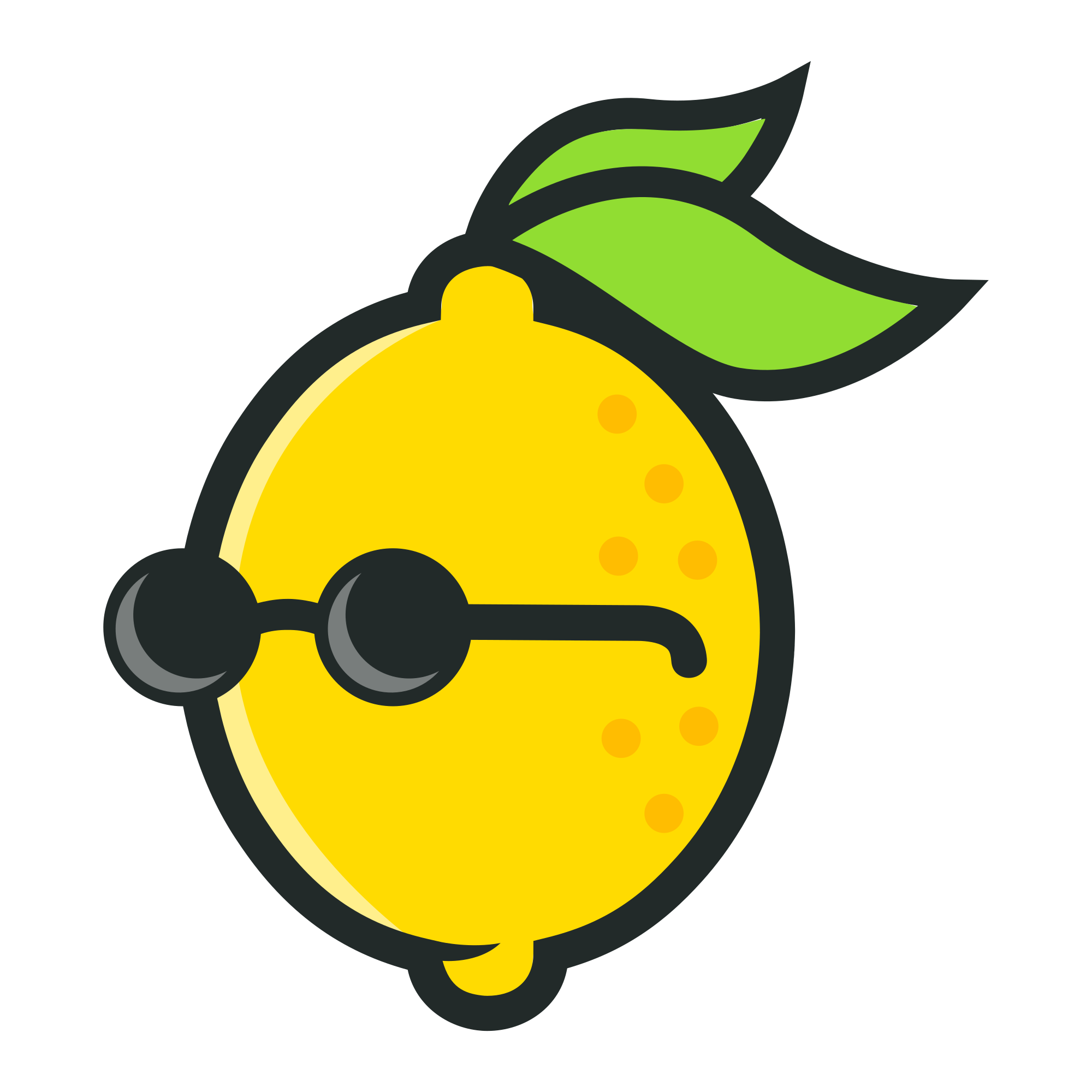 A lemon with glasses, resembling the famous singer and musician John Lennon.