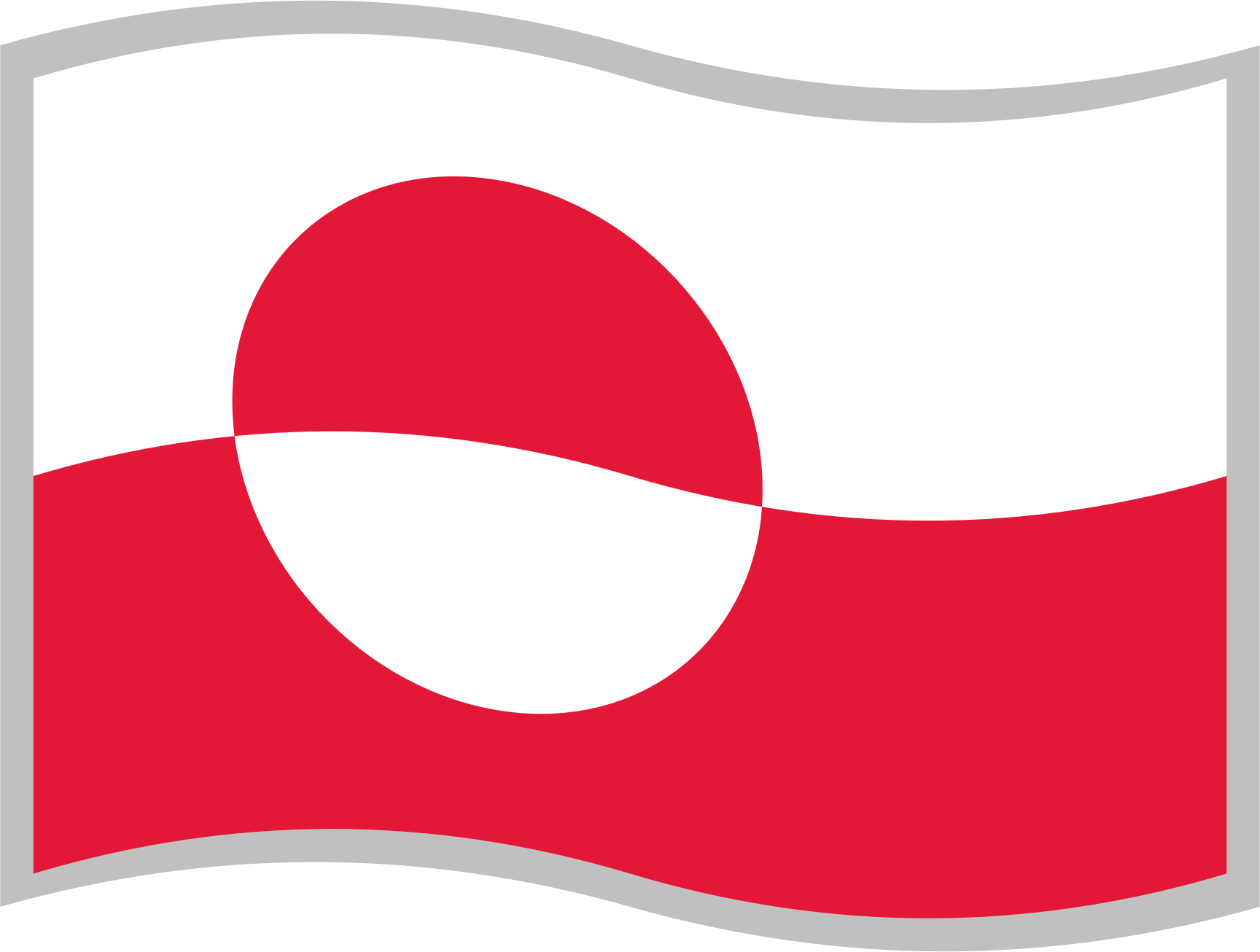 Flag of Greenland; slightly curved to suggest waving in the wind; with a grey border for use on a background similar to one of the flag's colours.