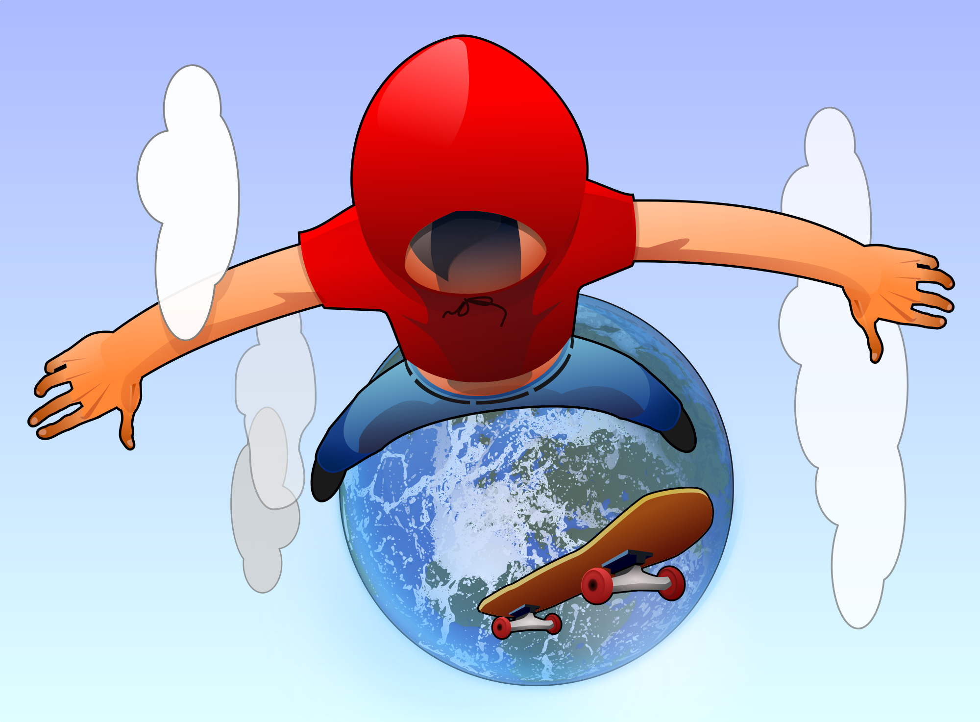 A remix to make the planet look a little more like a planet and also to fix some graphical errors in the original very cool clipart of a kid jumping over the world on a skateboard!