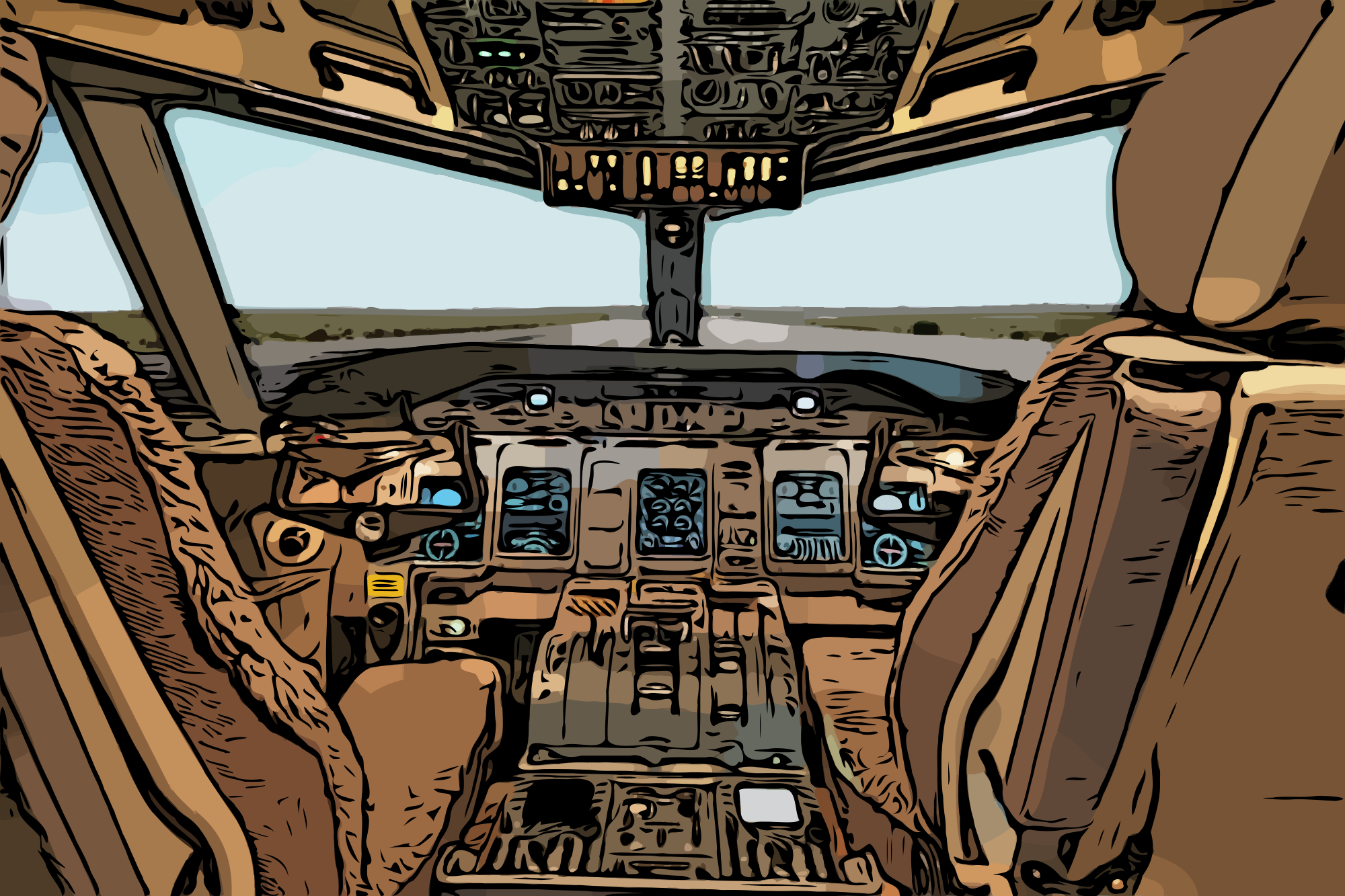 @marcodiego recommended trying to synthesize this public domain photo of an airplane cockpit, so I tried. Not perfect, but hope someone can use it!