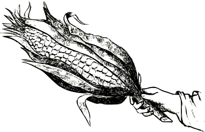 a hand holding a big ear of corn