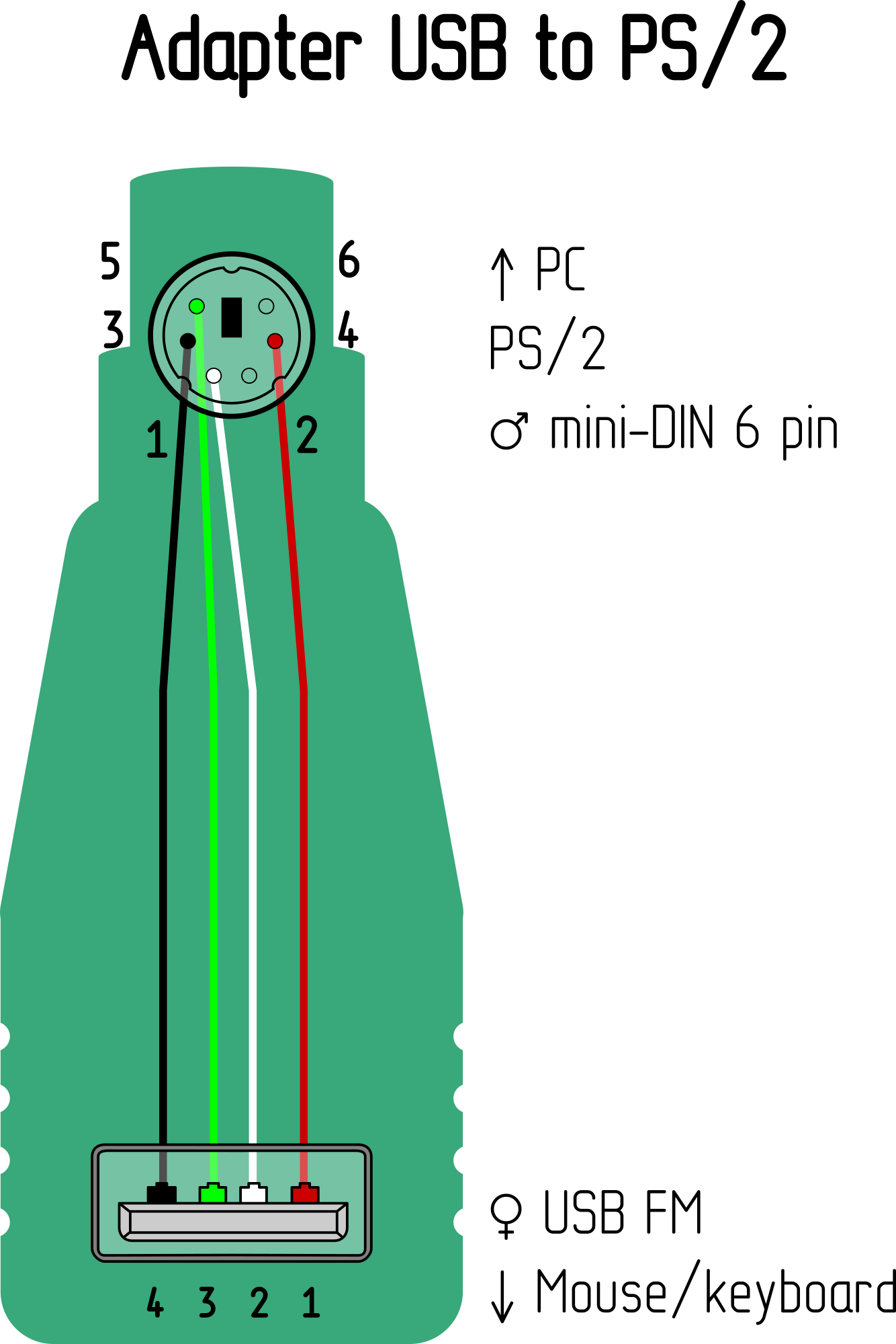 Pinout of adapter USB to PS/2.