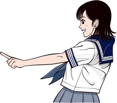 - girl female young lady woman school class Japan Japanese student uniform schoolgirl laugh laughing smile happy point pointing finger gesture smiling