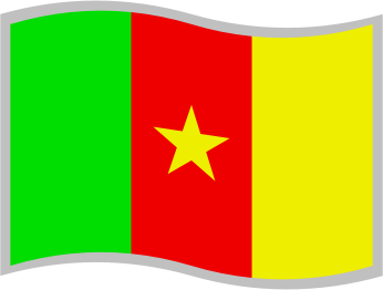 Flag of Cameroon; slightly curved to suggest waving in the wind; with a grey border