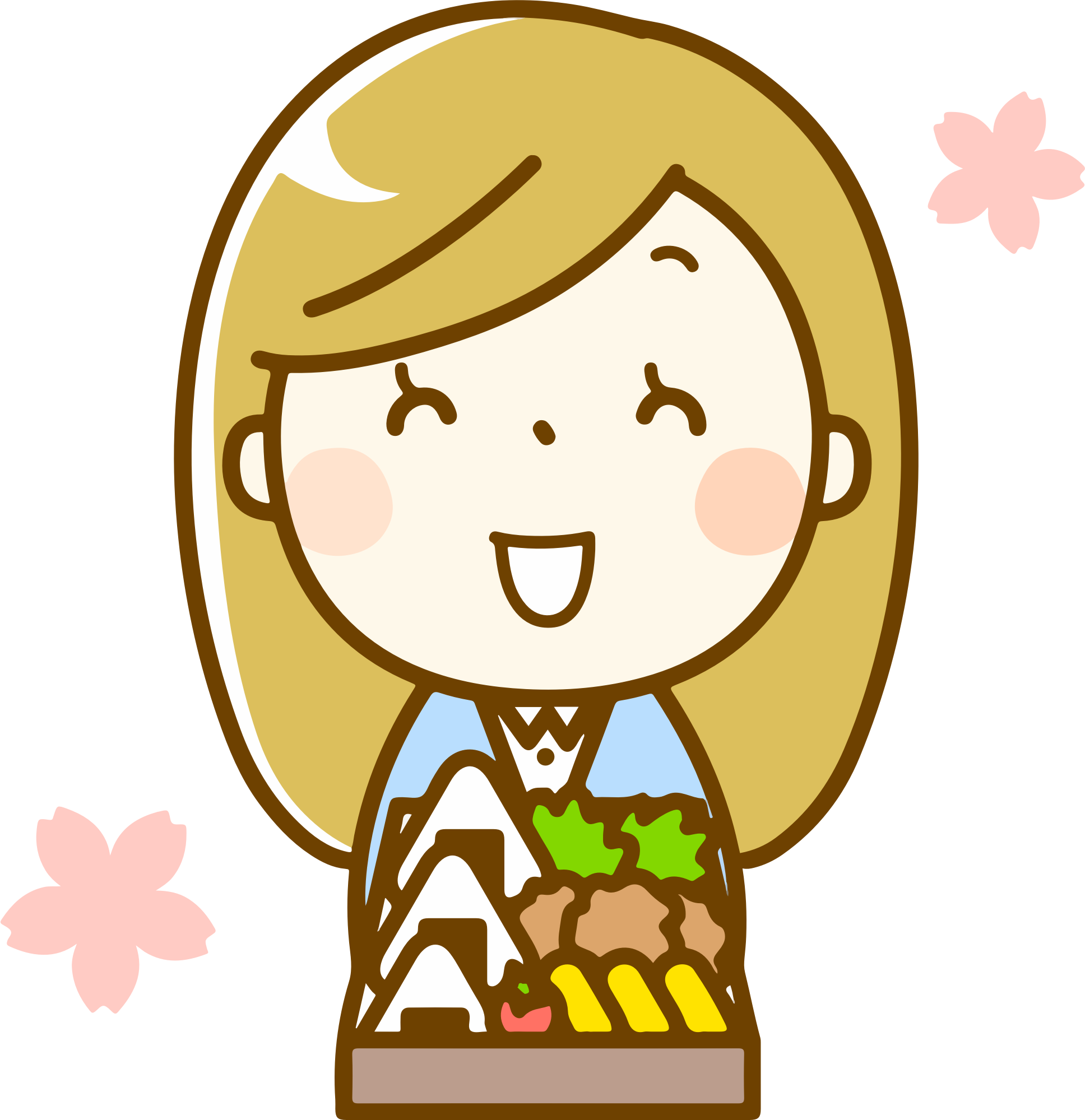 - bento lunchbox lunch box woman female lady girl cherry blossom sakura view viewing happy food rice Japan Japanese cuisine onigiri hanami