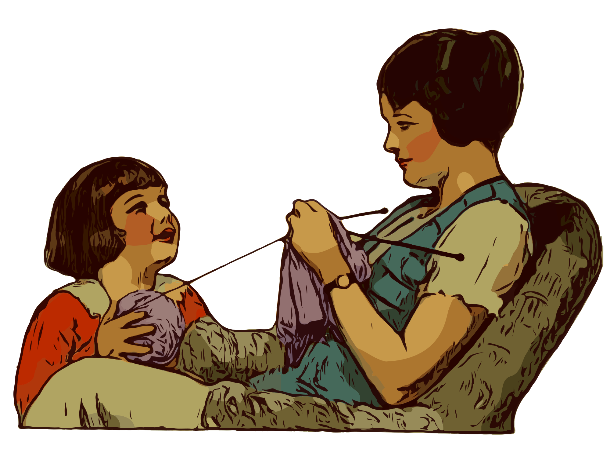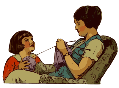 a mother knitting with her kid's help