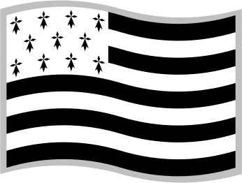Flag of Brittany; slightly curved to suggest waving in the wind; with a grey border