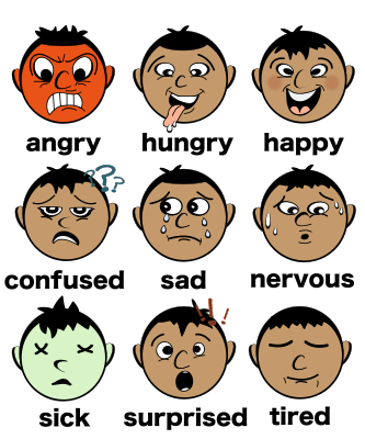 - man mood different tired happy surprised hungry angry ESL EFL poster male moods face emotions feelings English text flash cards study remix+233691