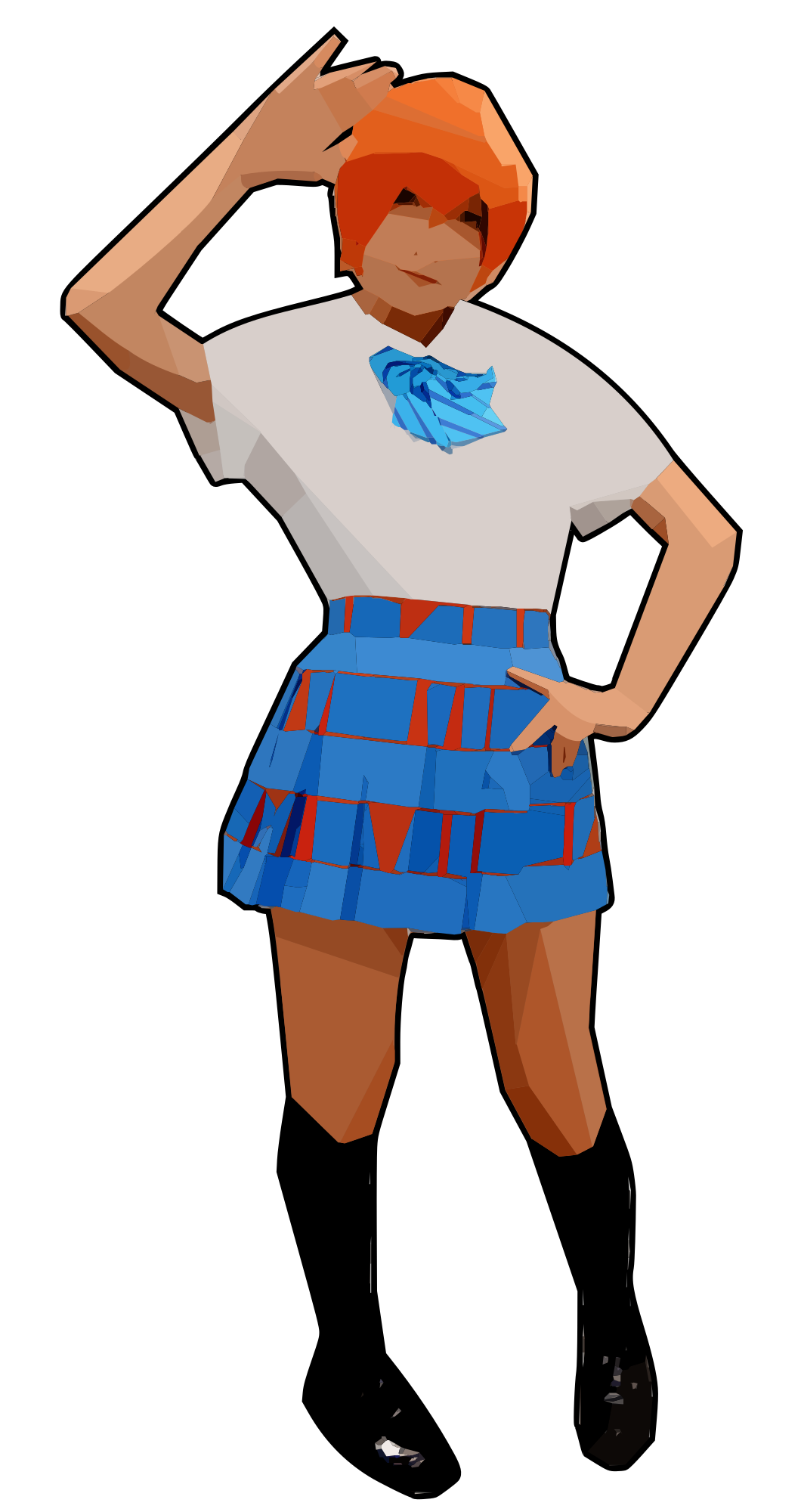 This is a young lady in a blue skirt posing. (Based on a public domain image released to wikimedia by Solomon203)