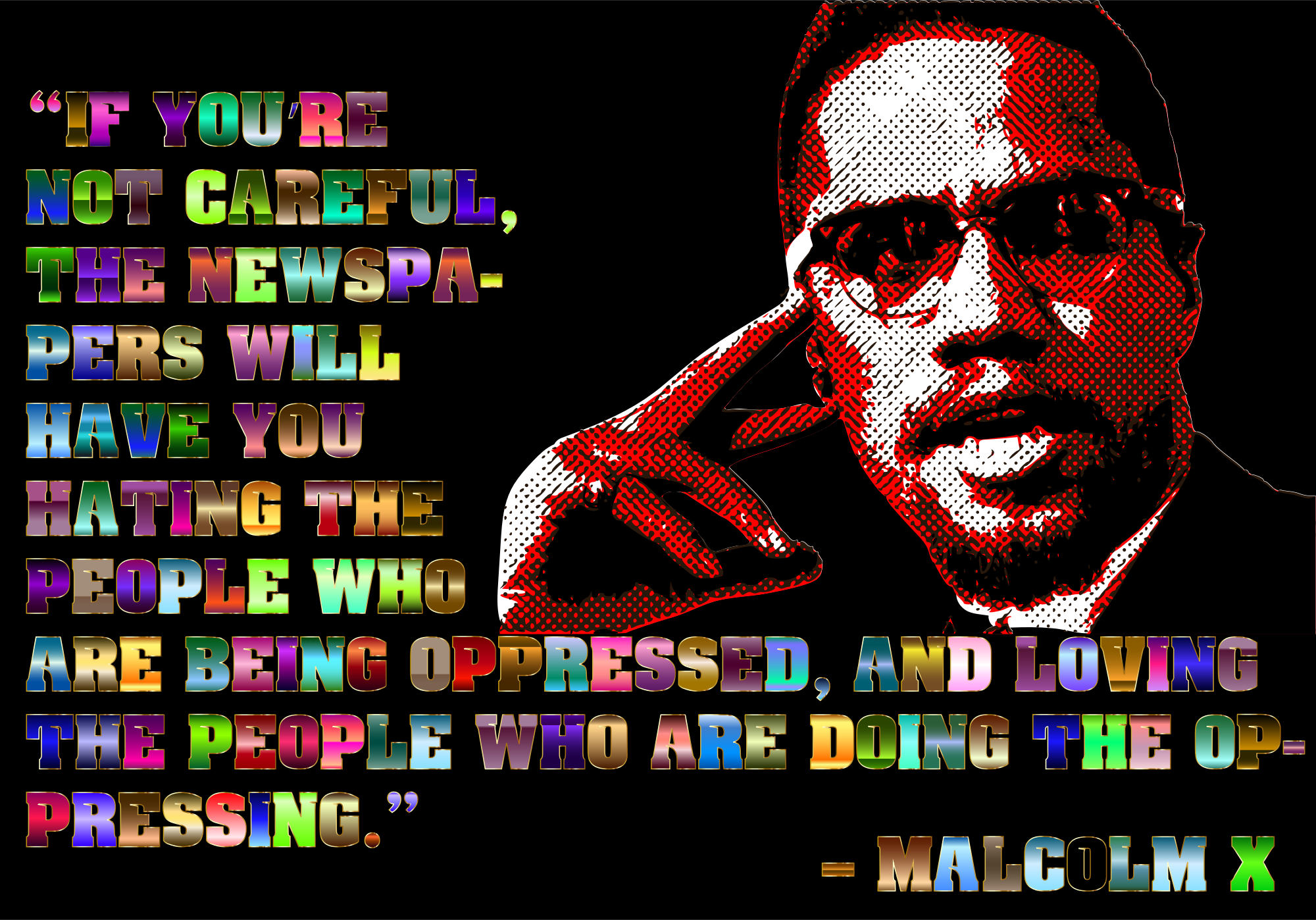 - Malcolm X Quote Propaganda News Typography Media Television TV Indoctrination Brainwashing Politics Political Misinformation Fake News Psychological Warfare Disinformation Subversive Subversion Psychology Deception Deceit Lies Lying Advertising Truth Destruction War Weapons Newspeak Doublespeak 1984 Colorful Prismatic Chromatic Rainbow remix+227241