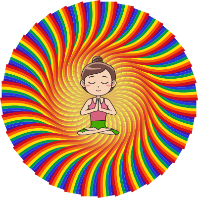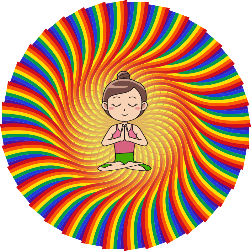a woman in a mandala rainbow meditating