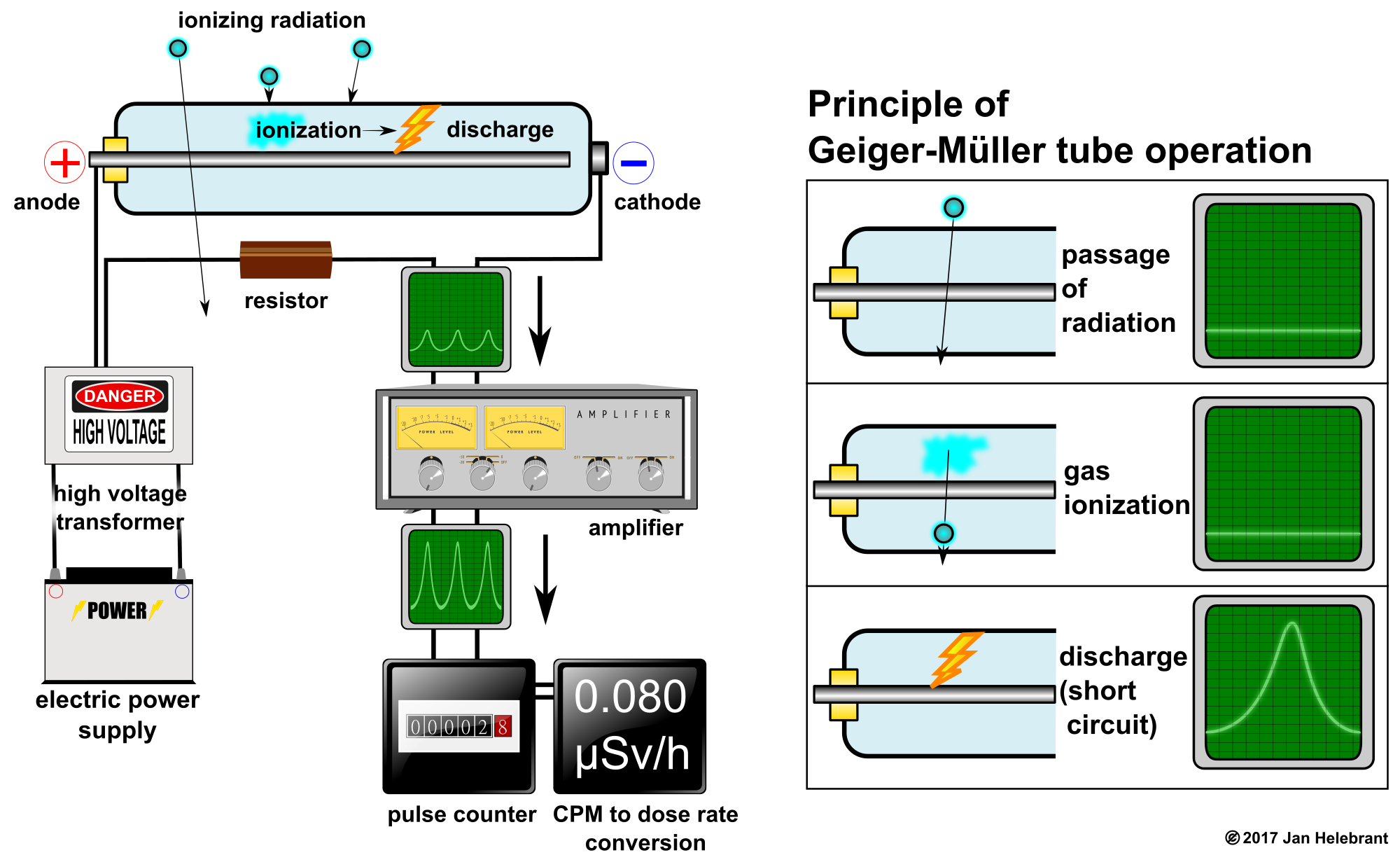 - Geiger-Müller tube Geiger counter geiger radiation detection gas ionization ionizing transformer pulse discharge cathode anode amplifier remix+189136 remix+172330 remix+172388 remix+181043 remix+8281 radioactivity