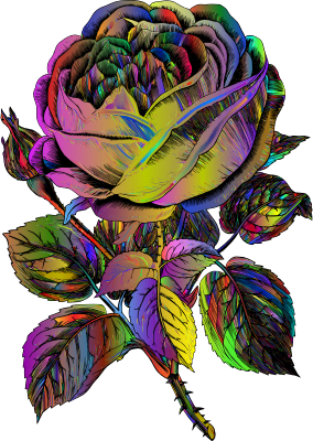 - Rose Flower Sketch Line Art Floral Plant Decoration Decorative Ornamental Vintage Retro Old Antique Colorful Prismatic Chromatic Rainbow Surreal Psychedelic rainbow